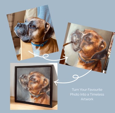 Discover how I turn your favourite photos into meaningful, hand-painted portraits that capture personality, emotion, and memories you’ll treasure for a lifetime. View sizes and pricing.