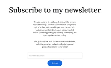 If you have an online newsletter subscription link, you can encourage people to sign up by offering a small incentive, like a free resource—maybe a list of your favourite art materials—or a discount on one of your prints.