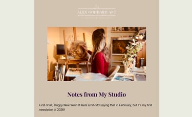For example, I’ve recently started sending a “Studio Notes” style newsletter. In it, I talk about how I’m growing my creative business—how much time I spend on different tasks and what it’s really like behind the scenes of building an art business. Occasionally, I’ll also share updates about artworks for sale or new products I’ve launched, like greeting cards or bookmark designs—but it’s always part of a bigger story, not just a sales pitch.