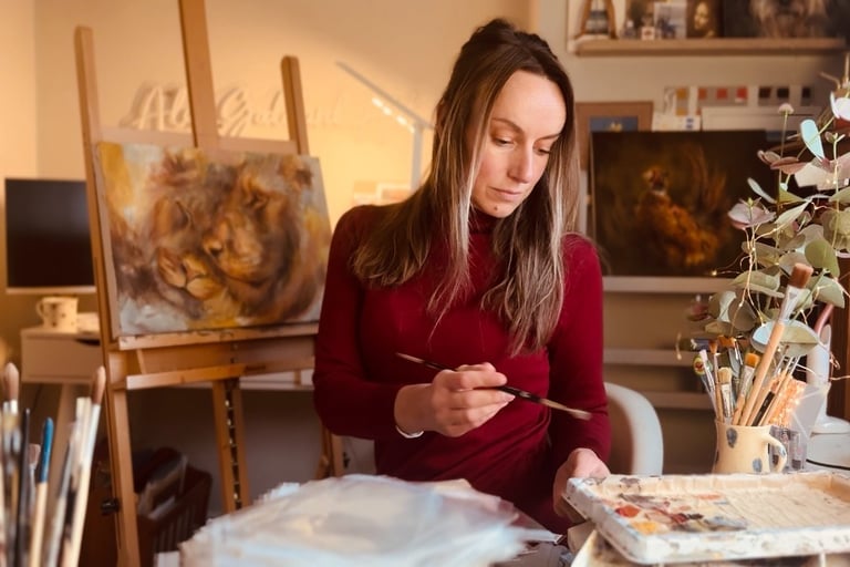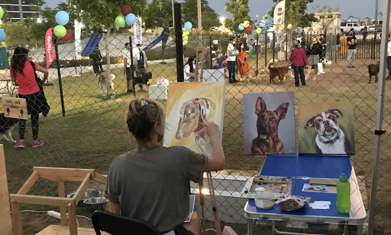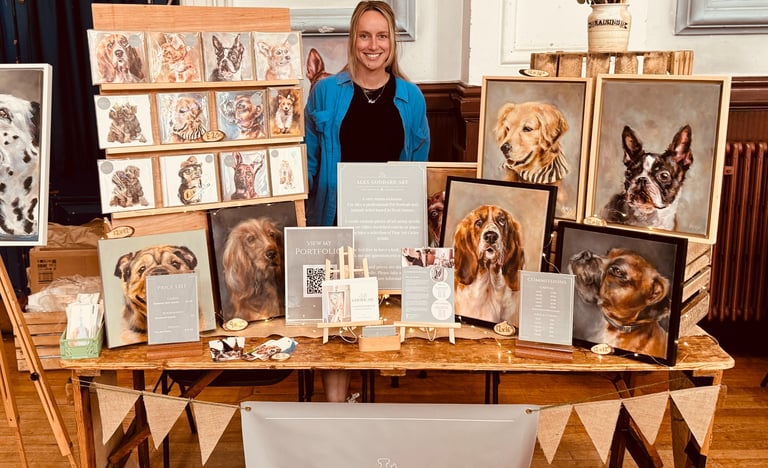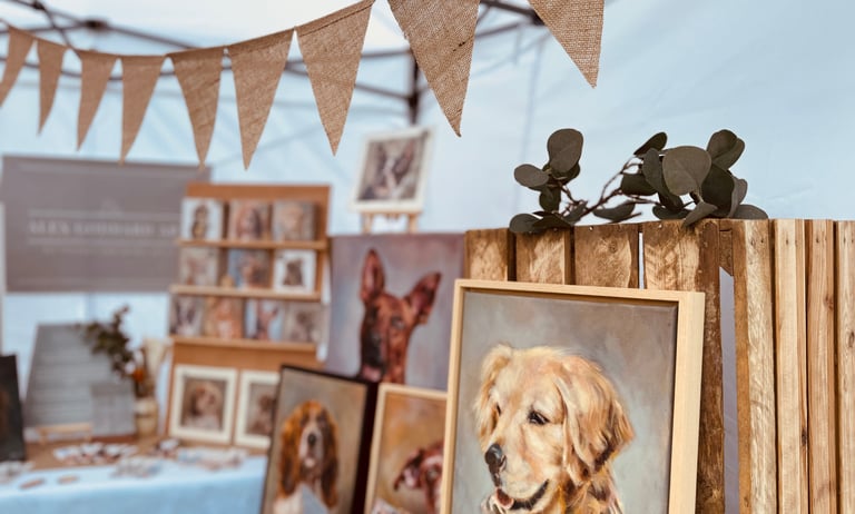 I began by specialising in pet portraits, so I researched local dog groups, dog owner meet-ups, pet shows, and similar events. I reached out to the organisers and, more often than not, they were happy for me to attend with a few of my paintings.
