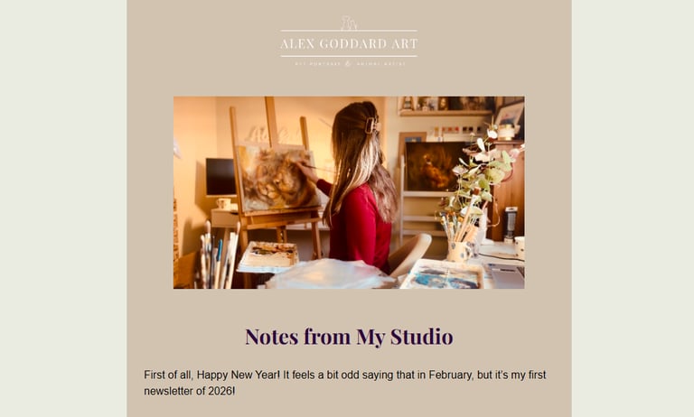That said, it’s important not to go in with a hard sell every time you send a newsletter. The goal is to nurture your subscribers. Share regular updates that show your personality and give people a glimpse into what you’ve been working on in the studio.