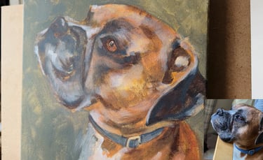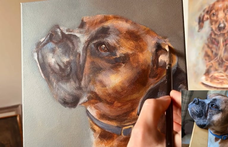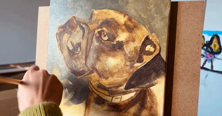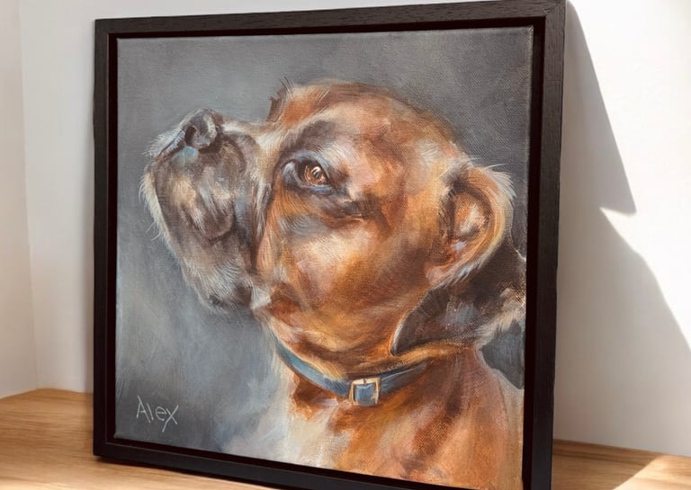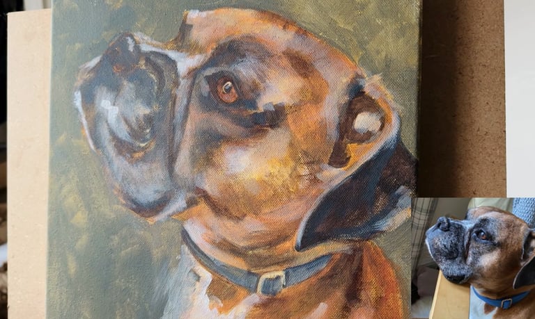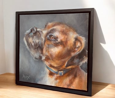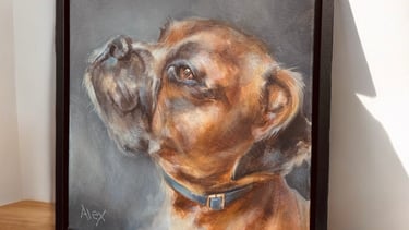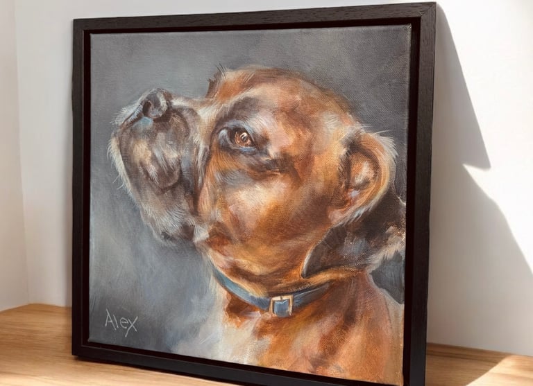 Hello! I’m Alex Goddard, an acrylic painter specialising in pet and animal portraits. Over the years, I’ve painted hundreds of pets—from Labradors and Boxers to Bulldogs and even rabbits!